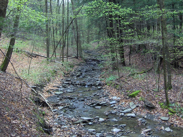 Directions: From NY 392, turn onto Carson Road and drive to the Finger Lakes Trail sign on the northside of the road. Park along the side of the road (be careful of the ditch). The GPS coordinates are N42 30.193 W76 06.735 for those who have a GPS devise.
