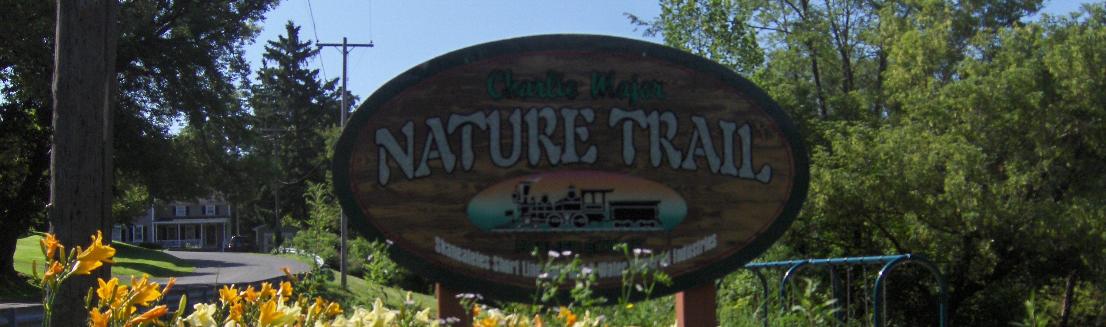 Enjoy the natural and historic aspects by walking the Charlie Major Nature Trail along Skaneateles Creek between Old Seneca Turnpike and Crow Hill Road. A rail line, known as the Skaneateles Short Line, helped to maintain prosperity in the community by serving the industries along the outlet. It also carried passengers from the New York Central Railroad at Skaneateles Junction to Skaneateles where they could board the steamboats for trips around the lake.