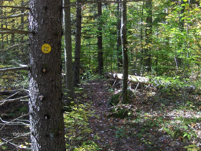The Clear Pond Trail is marked with yellow DEC trail plastic discs. This hiking trail travels 0.5 miles to the scenic Clear Pond. The DEC trail sign says it's 0.3 miles (it's not). The trail climbs before descending to the pond. According to some maps the trail continues on to Corner Pond, about 0.5 miles away. We did not see any trace of a trail at the outlet of Clear Pond, just a tangle of brush (although we did not look very hard).