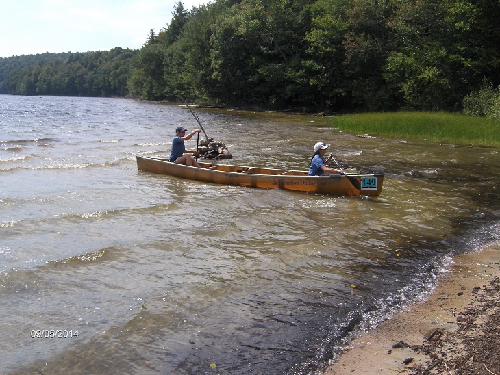 From the parking area you'll see an opening in the woods near where the Canoe Carry sign in located. This is where the access to the canoe carry trail is. Turning left is the trail that leads 0.4 miles to Dunning Lean To and the western shore of Eighth Lake. There is a trail register almost immediately. The trail is marked with canoe carry markers and snowmobile markers. It is a leisurely walk on a wide path to the lake that can be enjoyed by all.