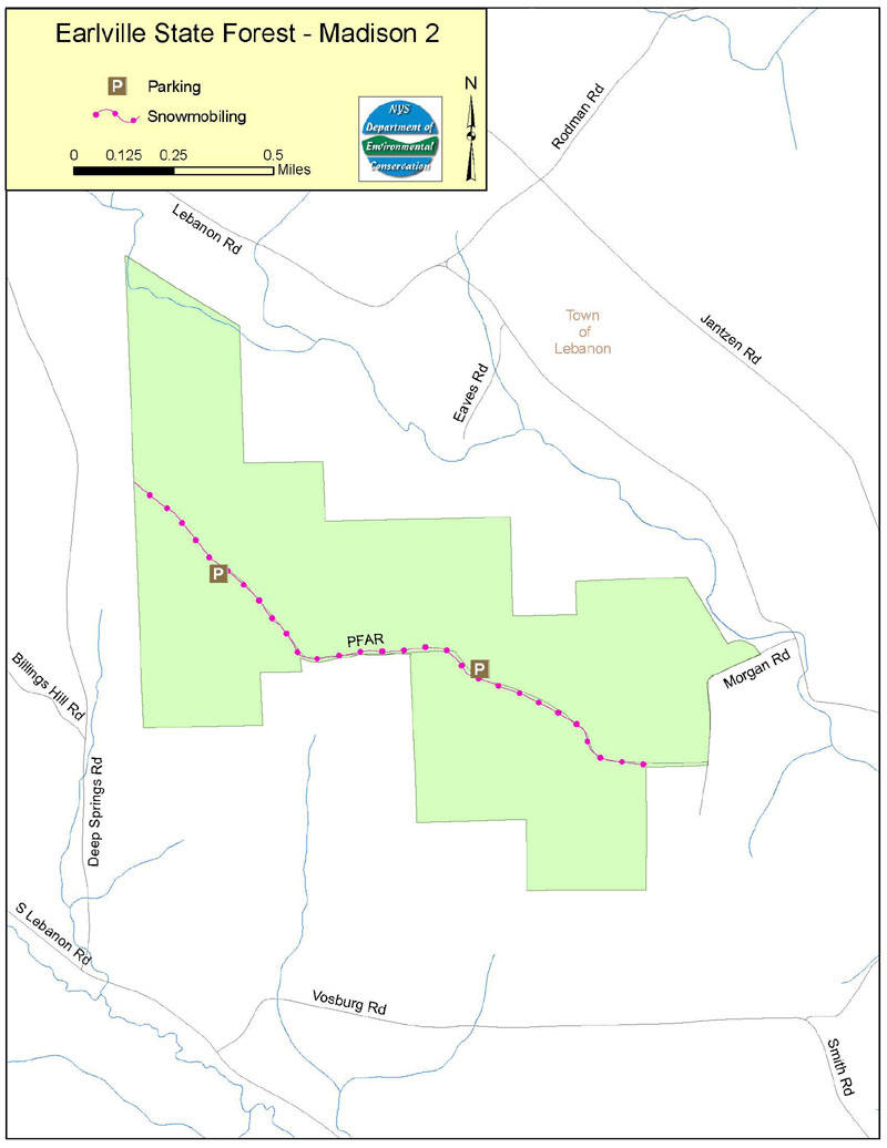 The 635 acre Earlville State Forest is located in the town of Lebanon, a few miles west of the village of Earlville. The state forest sits at an elevation of nearly 1600 feet, which allows for panoramic views of the country side from the entrance to the state forest off Morgan Road (see picture above).