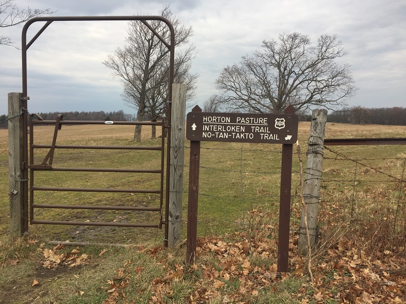 At the pasture gate near the dirt Seneca Road you will turn right before reaching the gate and start following the Interloken Trail along an old road in a pasture. There is a view from the pasture, known as the Horton Pasture. At 3.0 miles pass through another gate. At 3.25 miles the Interloken Trail turns right off the old road. At 3.6 miles cross the dirt Townsend Road. At 4.9 miles reach the parking area on Parmenter Road and the end of this loop hike. Look below for a few pictures (coming soon) and a map of this hike.