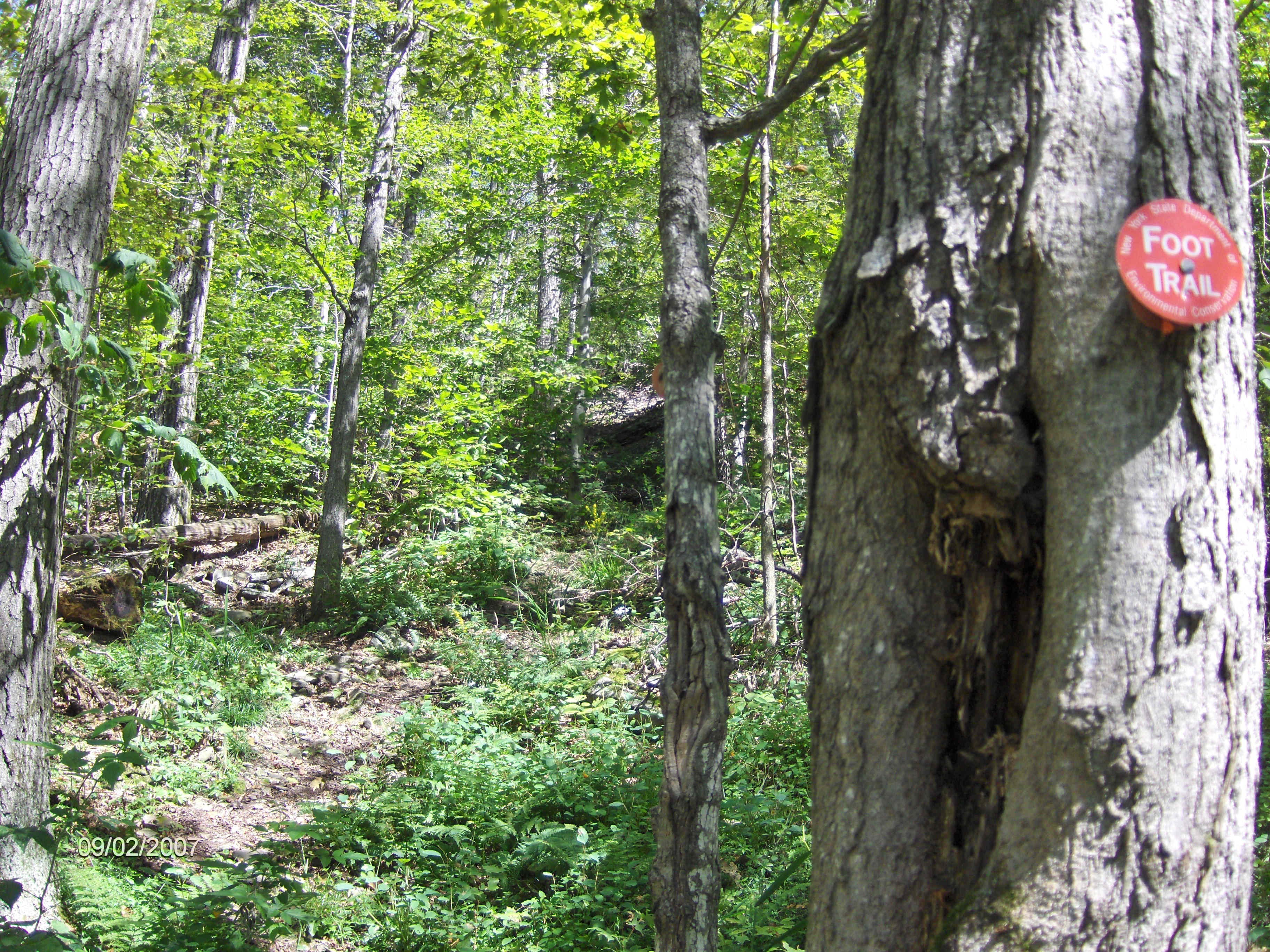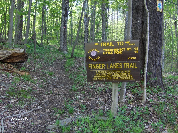 This 3.7 mile section of the Finger Lakes Trail follows the red discs of the TouchMeNot Trail in the Middle Mountain Wild Forest section of the Catskill Forest Preserve. This section of trail begins off Beech Hill Road in a small DEC parking area and begins by following a narrow stretch of the wild forest bordered by private property on both sides.