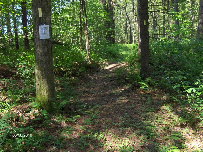 Soon after crossing Bamberry Road the trail reaches the junction of the southern terminus of the yellow blazed Link Trail. The Link Trail heads north toward Cazenovia with it's northern terminus in Canastota at the Erie Canal Trail. The Link Trail coincides with the North Country Trail from Tioughnioga WMA to Canastota.