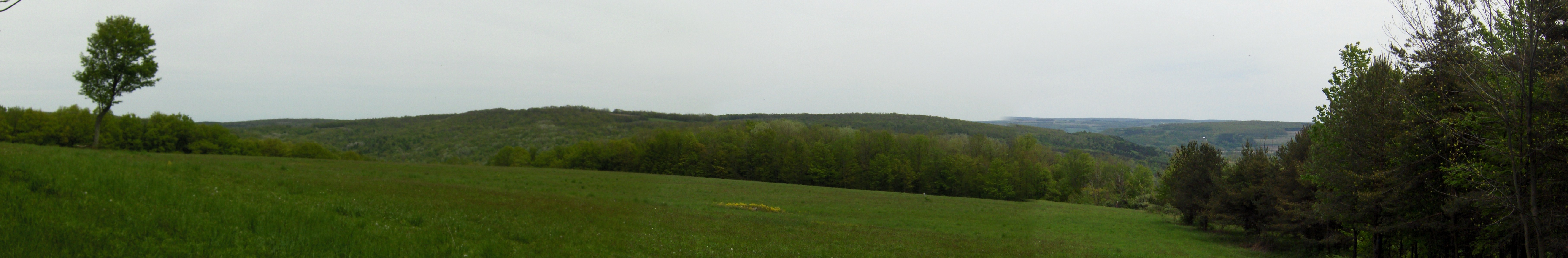 You'll find an old railroad bed that the white blazed Finger Lakes Trail / North Country Trail follows through the sanctuary. You'll climb the blue blazed trail to open fields and panoramic views. Then it's onto the orange blazed trail, first climbing to a high point and a wet, boggy section of trail, then descending steeply into a ravine using numerous switchbacks on a well built trail. Then it's to the side of a small cascading stream and back to the Finger Lakes Trail / North Country Trail.