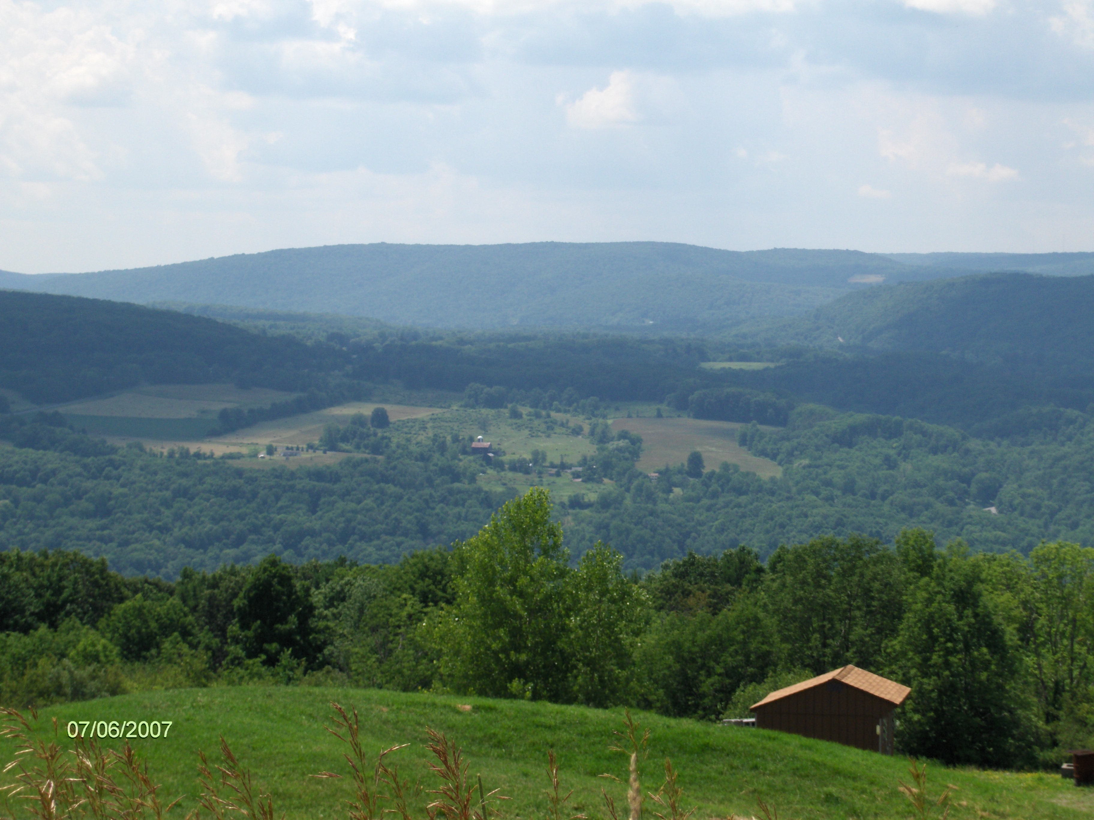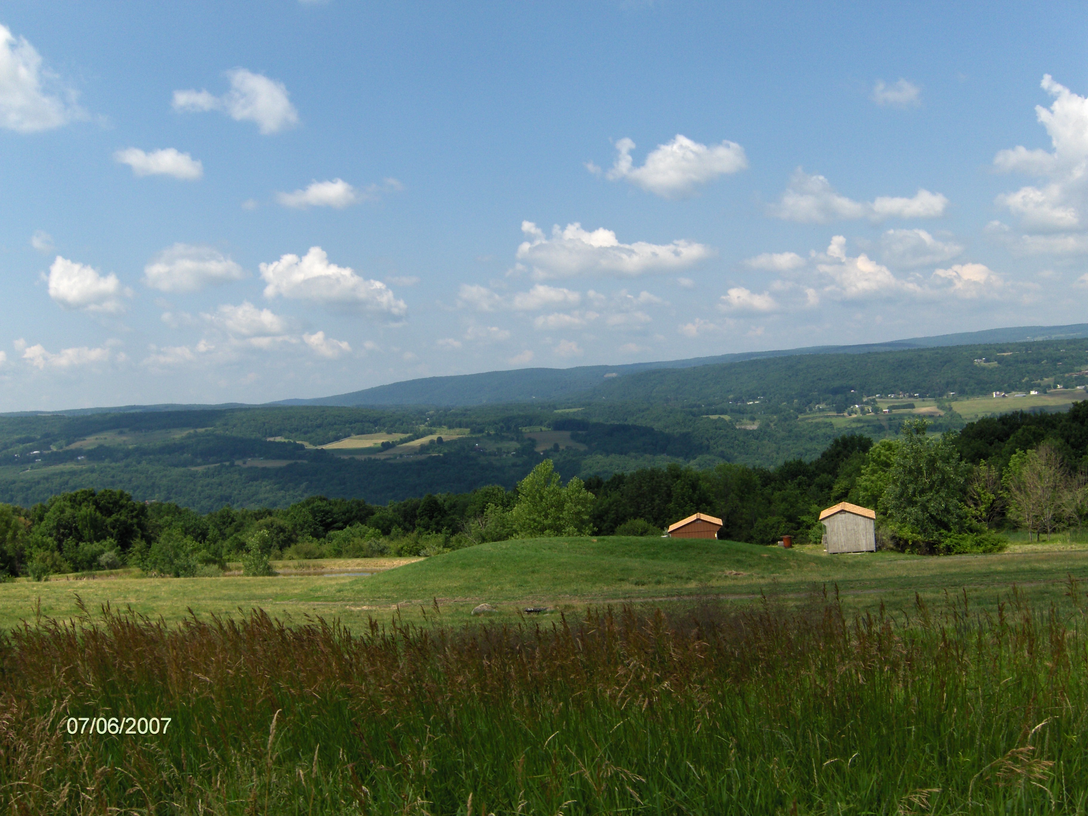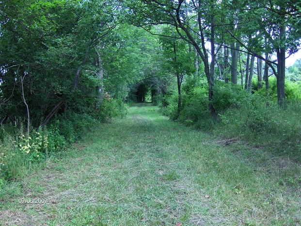 As you walk along Townline Road, at times you'll have nice views to your right. The trail leaves Townline Road on an abandoned section of the road near the corner of Layden Road. You are still on private property. After crossing Hilltop Road, there are impressive views of Inlet Valley to your right and soon in front of you. The trail reaches Bruce Hill Road and the end of this stretch of the FLT/NCT. There was an update in late 2012 which the trail now continues off road across Bruce Hill Road, eliminating the road walk. We will update this soon on our site.
