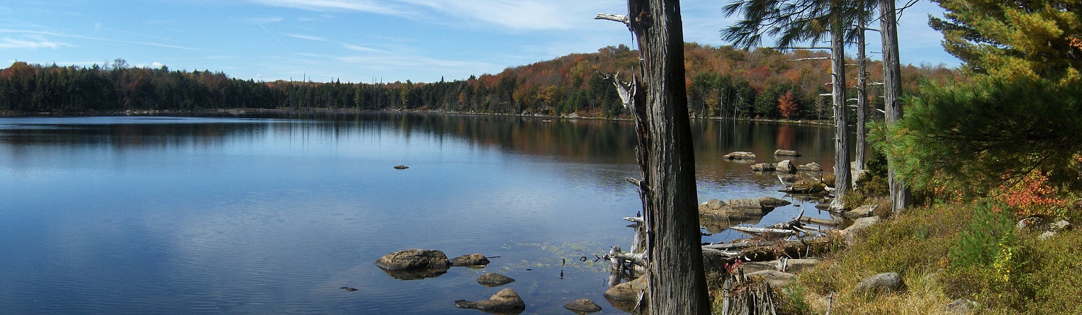 There is a small parcel of private land on the northeast corner of the lake, otherwise the rest of Gull Lake is on state land. After starting from the large parking area at the end of Bear Creek Road, follow the woods road known as Mill Creek Road past the kiosk. This road leads to private property and it was recently graded, making it driveable with most vehicles. It is a 2.2 mile drive along this road to the Gull Lake Trail junction. Bring your bike and ride to the junction if you want or just drive your car to the small parking area.
