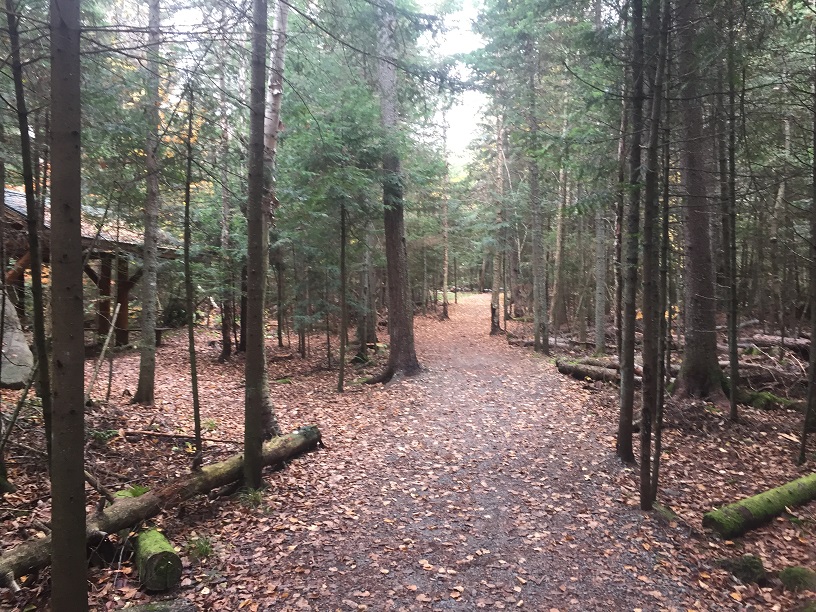 Main Loop Trail - This two mile trail loops around the property and intersects with the other trails in the preserve. There are four benches located at various locations along the trail. Located just off the trail is the Bridge To Nowhere. This suspension bridge was constructed by the Adirondack Mountain Club. The bridge leads to a large rock near a small waterfall.