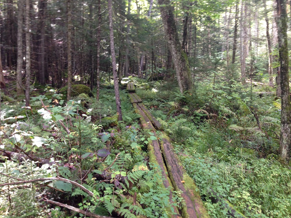 Old puncheons take the trail through a swampy area