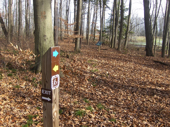 We would recommend hiking the blue and then the yellow loop, then continuing on the blue trail for a pleasant loop hike of about 1.2 miles. This hike starts at the parking area. Follow the gravel path from the kiosk and at 0.1 miles reach a bench at an intersection. Turn left at this intersection. This is the Blue Loop Trail. At 0.15 miles turn left on the Yellow Loop Trail. At 0.35 miles reach a nice overlook with a couple of benches. This is a great spot for a break and/or a snack.