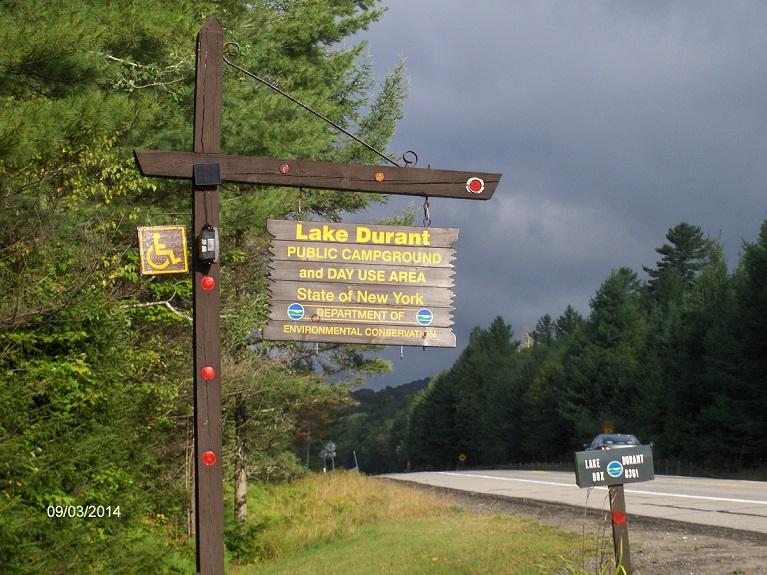 Lake Durant Campground entrance along NY 28