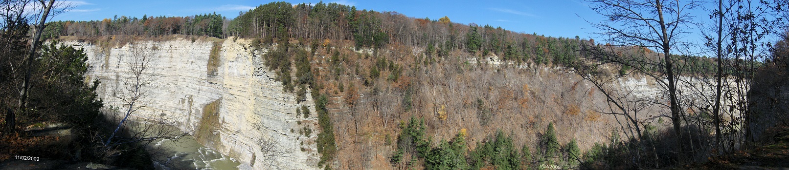 This great hike starts from the parking area off Park Road, just past the entrance for the "Parade Grounds". Park Road is located of NY 436. After just 0.1 mile of walking along an old railroad bed, you start to see views of the canyon on your right. There is a short path (0.15 miles) that leads to a ledge with a spectacular view of the canyon and Genesee River.
