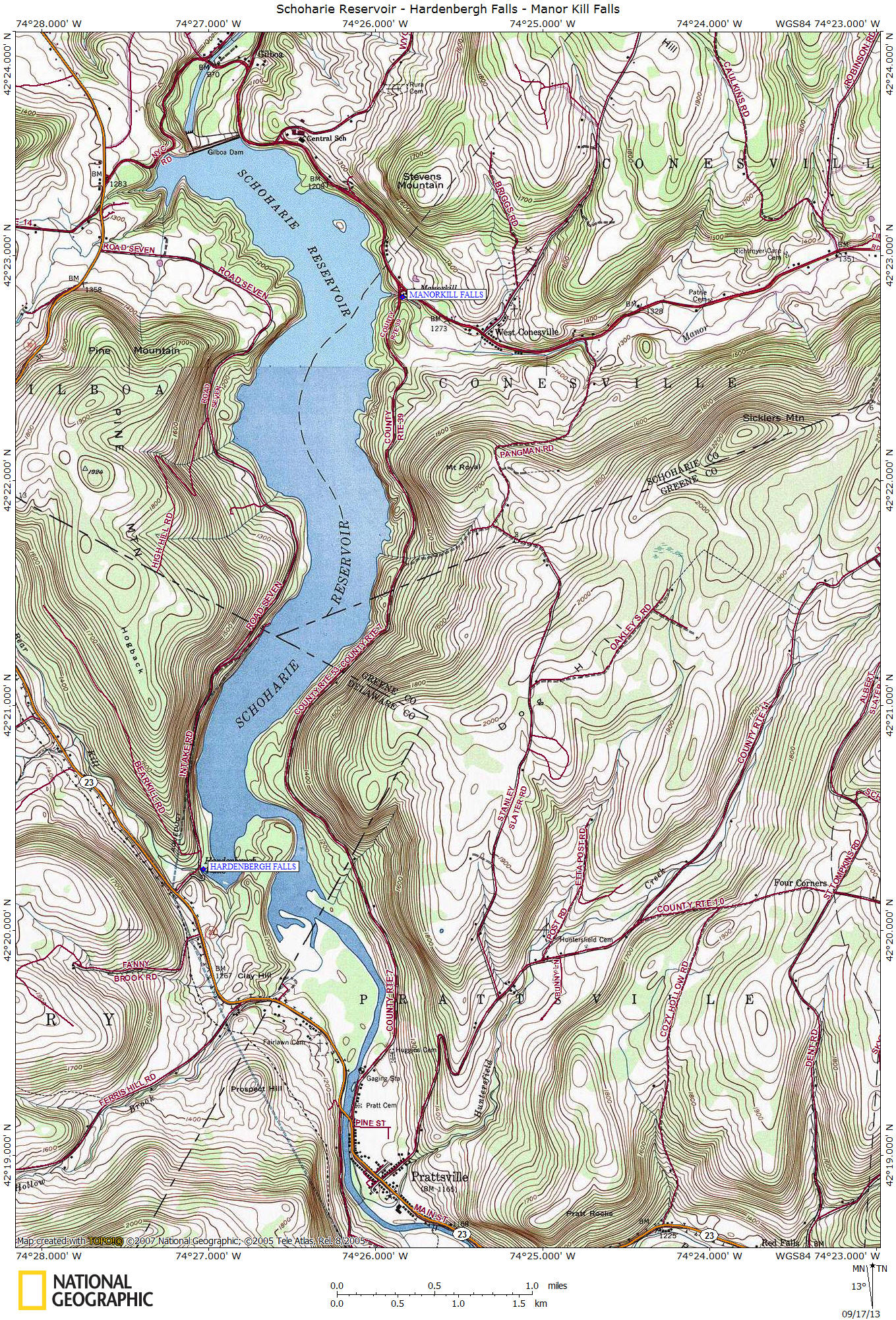 Directions: From Prattsville, NY 23 west, turn right onto County Route 7 just prior to bridge over Schoharie Creek. This road will become County Route 53 and then County Route 39. It is also known as Prattsville Road. You will see numerous parking area's for recreation on NYC DEP lands (permit needed). See the NYC DEP website for more information. The bridge over the Manor Kill is nearly six miles. You may notice the aqua blazed Long Path come out of the woods near the start of the bridge. There are pull offs on both sides of the road. The GPS coordinates for the bridge over the Manor Kill are N42 22.811 W74 25.873 for those who have a GPS devise.
