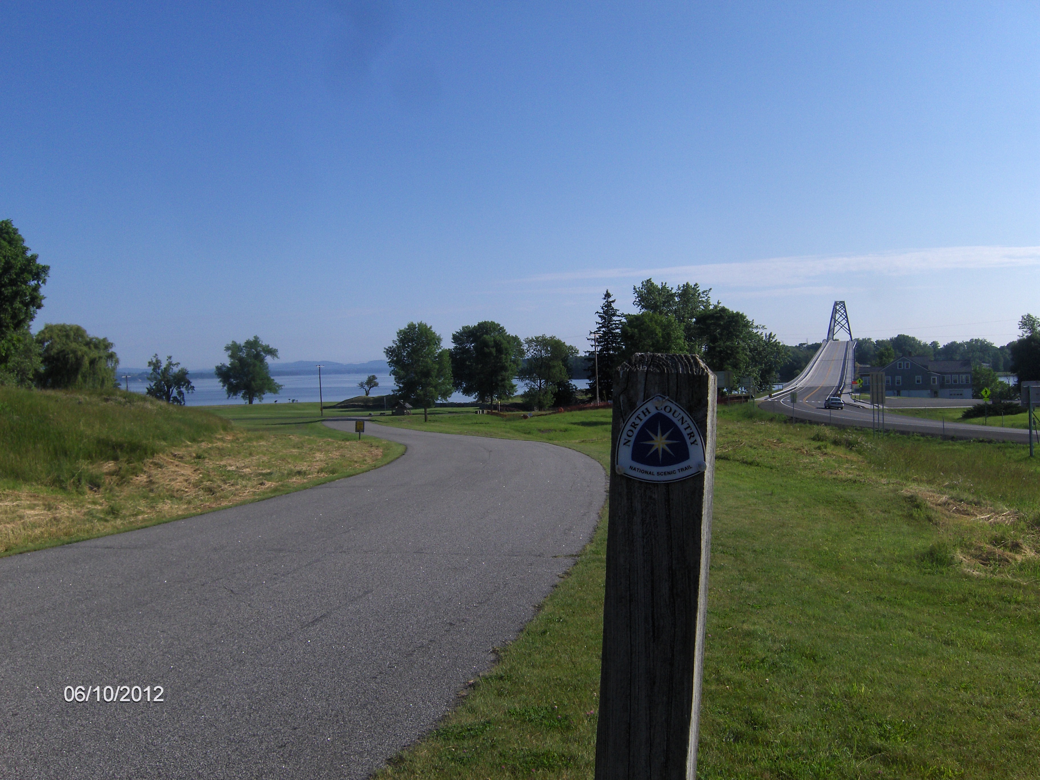 North Country National Scenic Trail at Crown Point State Historic Site & bridge to Vermont