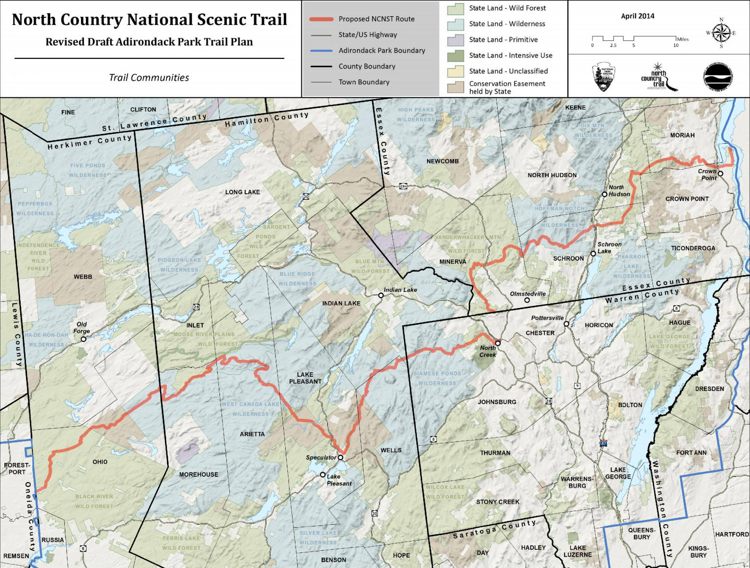 The Plan proposes a route for the North Country National Scenic Trail that will travel through nine Units of the Adirondack Park Forest Preserve: