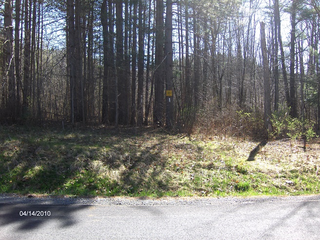 The trail passes the blue blazed Lake Trail from Birdseye Hollow Day Use Park on your right. The trail briefly follows Munson Road then crosses County Route 96 and enters the day use park. There is a port a potty and a picnic area here. The trail then crosses County Route 96 again, climbs for a short time before descending to cross County Route 16 (at an angle). The trail makes its way back to County Route 16, follows the road then turns left on Aulls Road to cross Mud Creek. The trail turns off the road, enters the woods and follows Mud Creek for a short time. The trail crosses seasonal dirt Dumack Road then turns toward Aulls Road. The trail reaches Aulls Road, turns left and follows the road to NY 226.