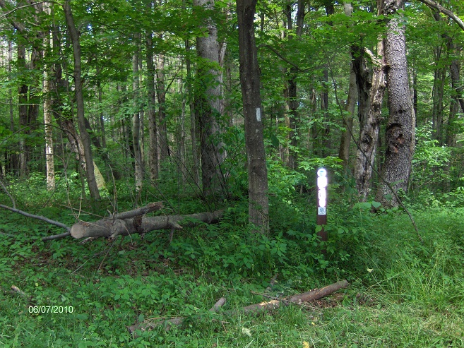 This section of the North Country Trail features Cuyler Hill State Forest. This part of the NCT coincides with the Finger Lakes Trail up to "Three Trail Junction", located near the end of this section. The first blue blazes for the North Country Trail in New York State for those traveling east are located on this section as the NCT finally breaks away from the Finger Lakes Trail.