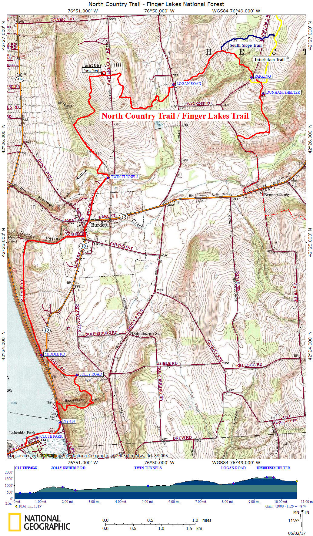 Mile Elevation North Country Trail Description 0.0 447 feet Trail turns left off NY 414 after canal bridge and enters Clute Park. Parking. GPS N42 23.115 W76 51.596