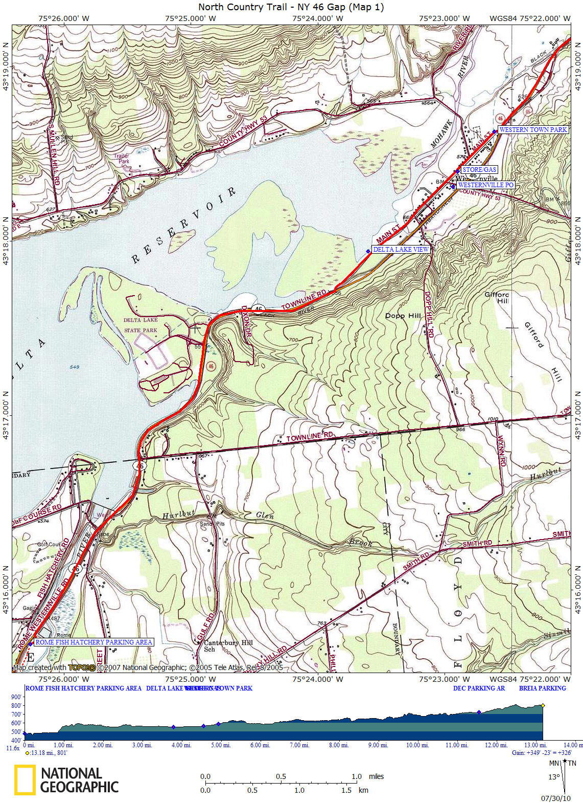 Mileage Elevation Trail Description 0.0 475 feet Leave the DEC Parking area for Rome Fish Hatchery and begin to follow busy NY 46.