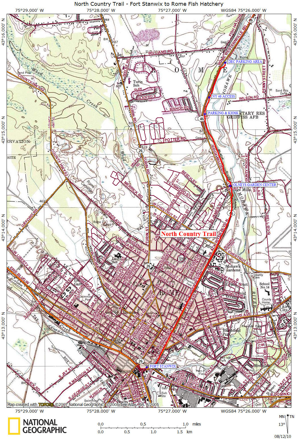 This four mile stretch of the North Country Trail in eastern Rome, NY is currently a road walk for the most part after you leave Fort Stanwix.  The City of Rome has proposed to build the 'Mohawk River Trail'.  From the city website the trail is described: