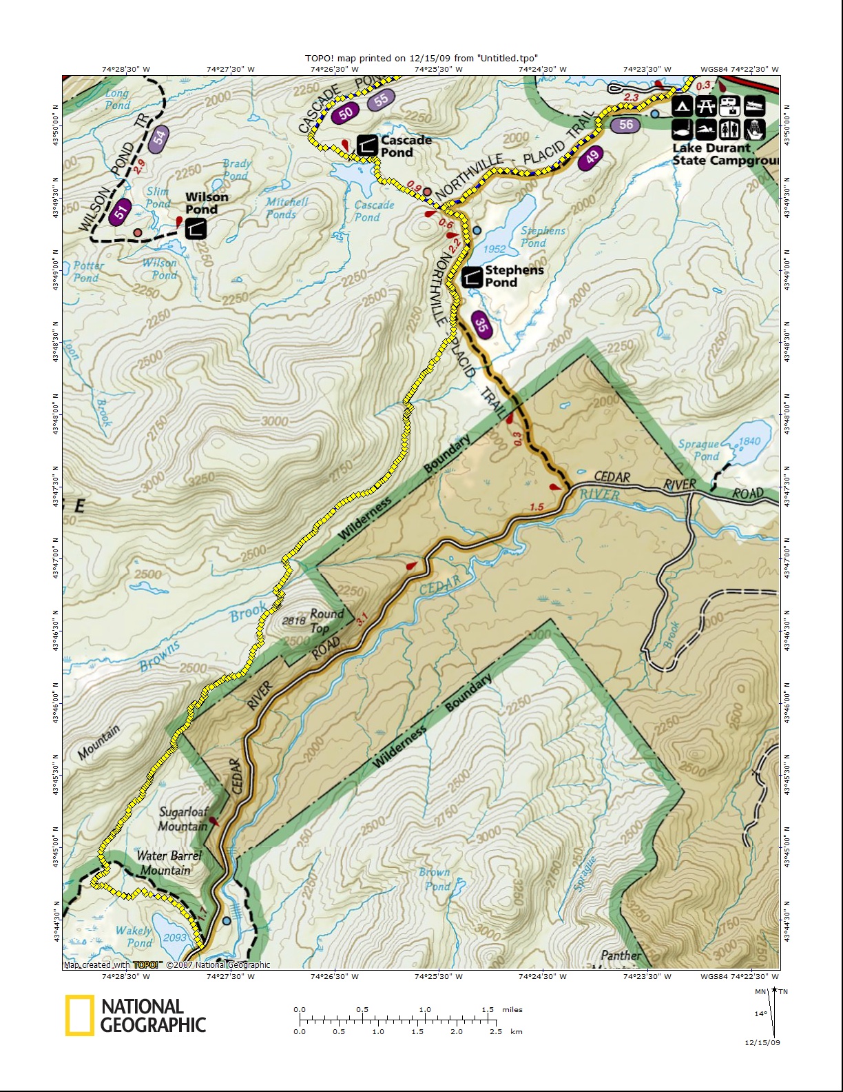 There are a few pictures, maps and a detailed description of this section of the Northville-Placid Trail below. Be sure to check out the NY DEC website at Adirondack Trail Information for updated trail conditions. We recommend that you purchase the Northville-Placid Trail (National Geographic Trails Illustrated Map)