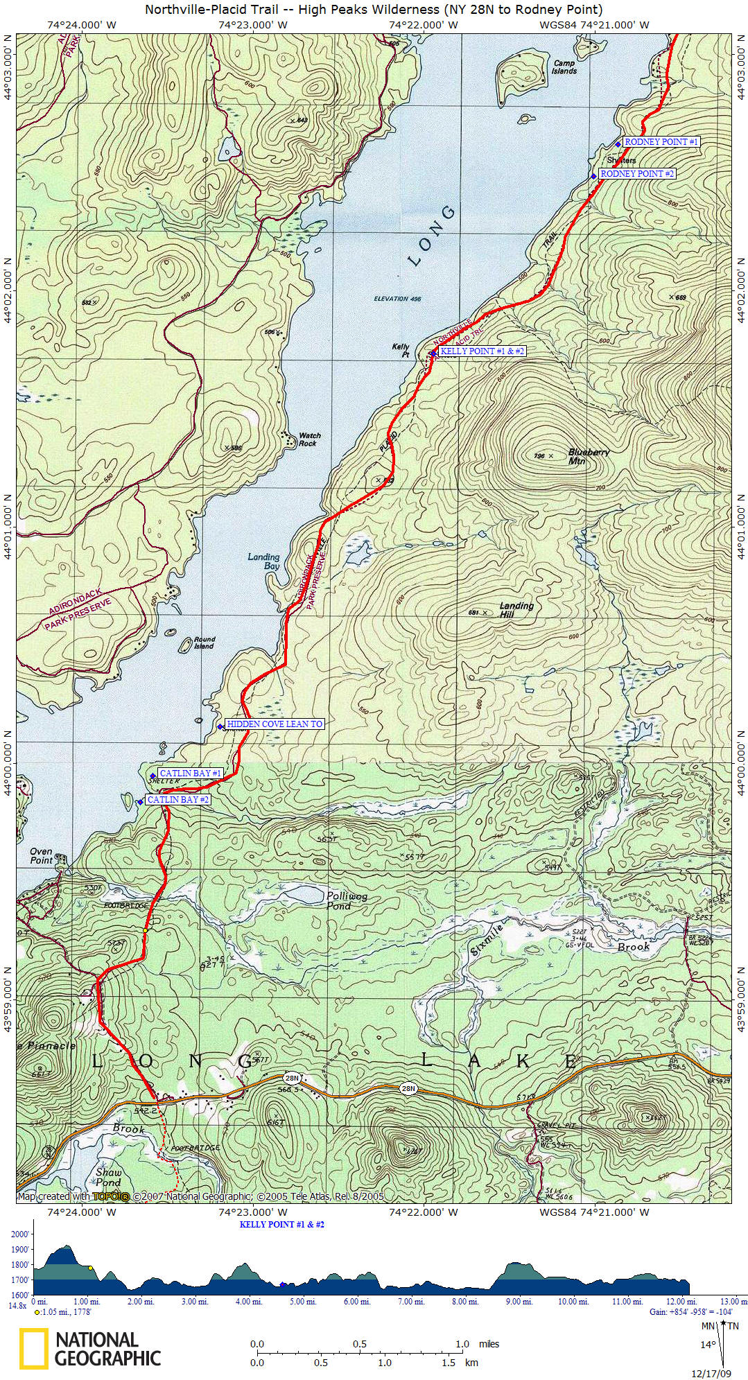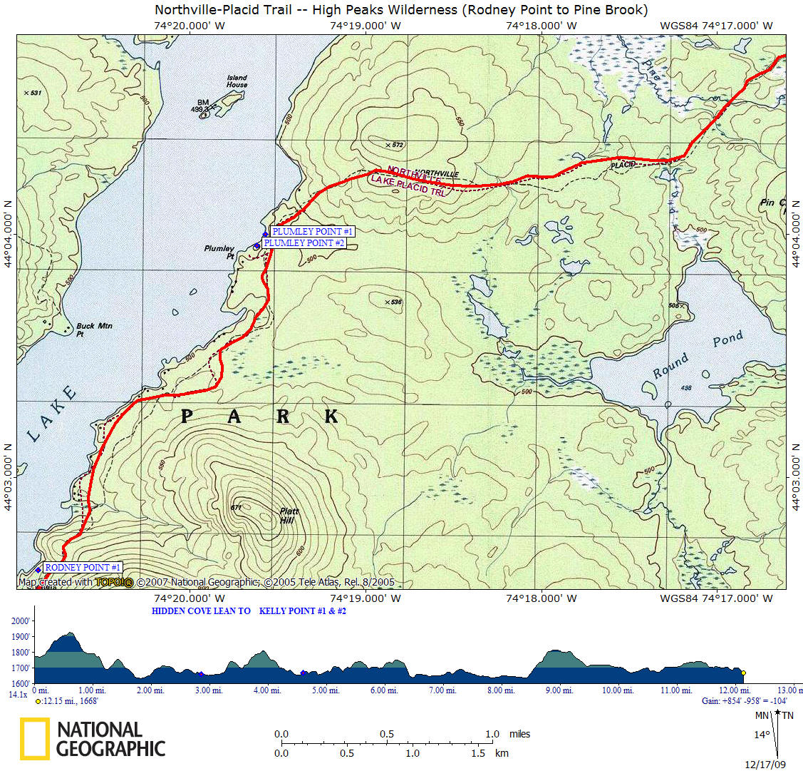 4.8 1667 ft Kelly Point Lean To Shelters are on left.