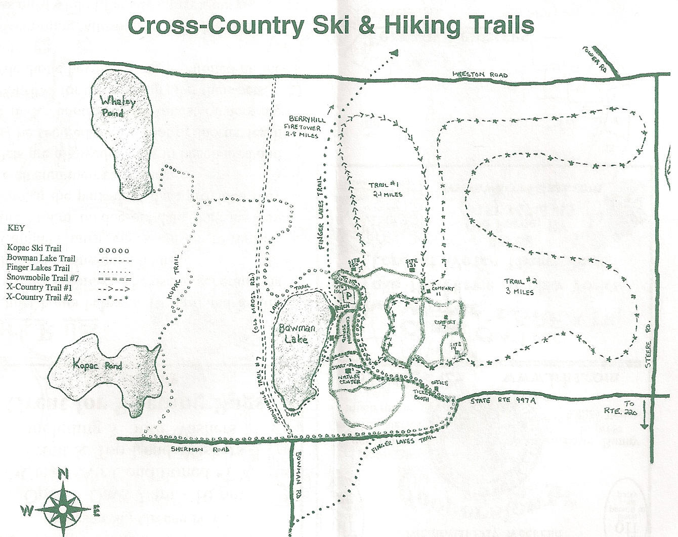| CNY Hiking HOME PAGE | New York State Parks | Finger Lakes Trail in Bowman Lake State Park | Kopac Trail |