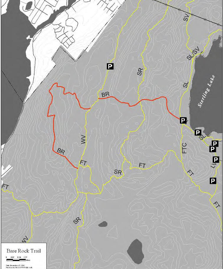 Fire Tower Connector Trail (0.5 miles) - This trail connects the Fire Tower Trail with the Sterling Lake Trail and Bare Rock Trail.