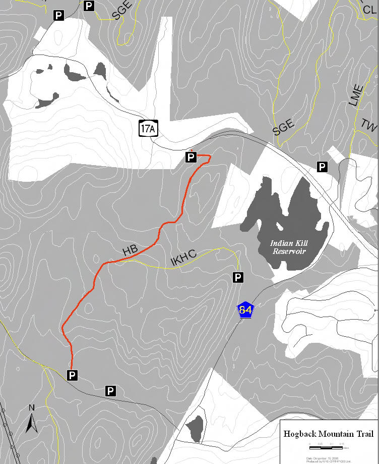 Hogback Mountain Trail (1.5 miles) - The northern trailhead is located on Route 17A near the Sterling Forest Ski Area. The southern trailhead is located near the NYU apartments on Ironwood Drive. In 2009 there was a bridge that collapsed that has closed the southern section of the trail. Generally, this trail is a pleasant trail with no significant views.