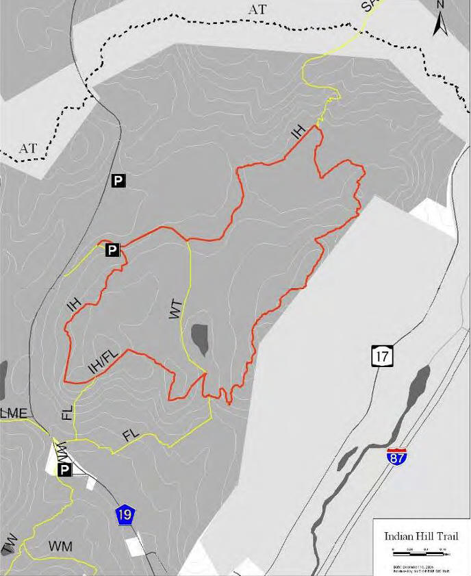 AT Connector Trail (0.4 miles) - This trail connects the Indian Hill Trail with the Appalachian Trail and continues north as the Sapphire Trail to a train station in Arden, NY.