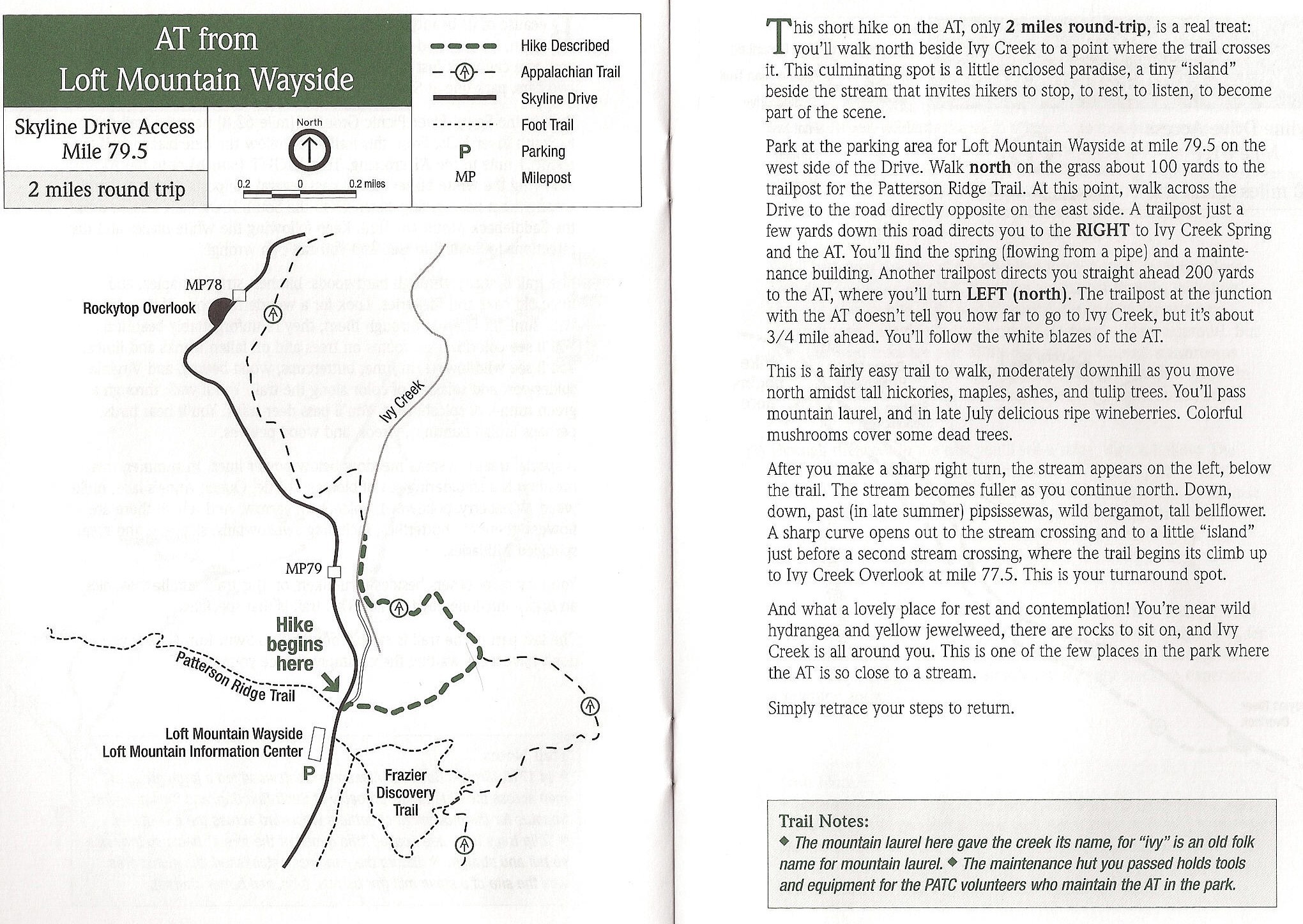This round trip hike of only 2 miles leads to Ivy Creek. Click the thumbnail below for more information on this hike.