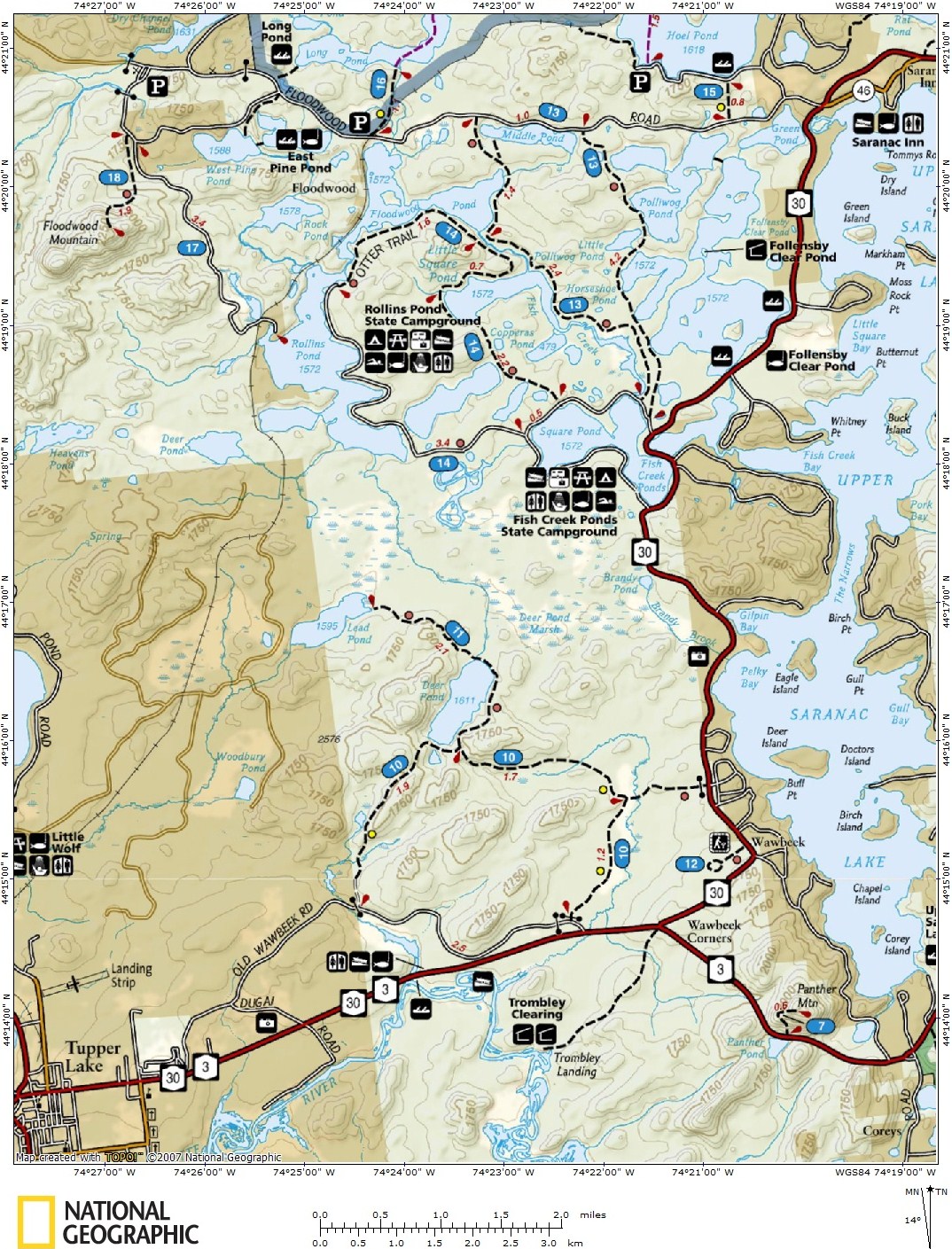 Panther Mountain Scarface Mountain Floodwood Mountain Fernow Forest Nature Trail Middle Saranac Lake Trombley Landing Deer Pond Lead Pond Hoel Pond Clear Lake Seymour Mountain Hemlocks Lead Pond Floodwood Loop Otter Hollow Loop Green Pond Follensby Clear Pond Little Green Pond