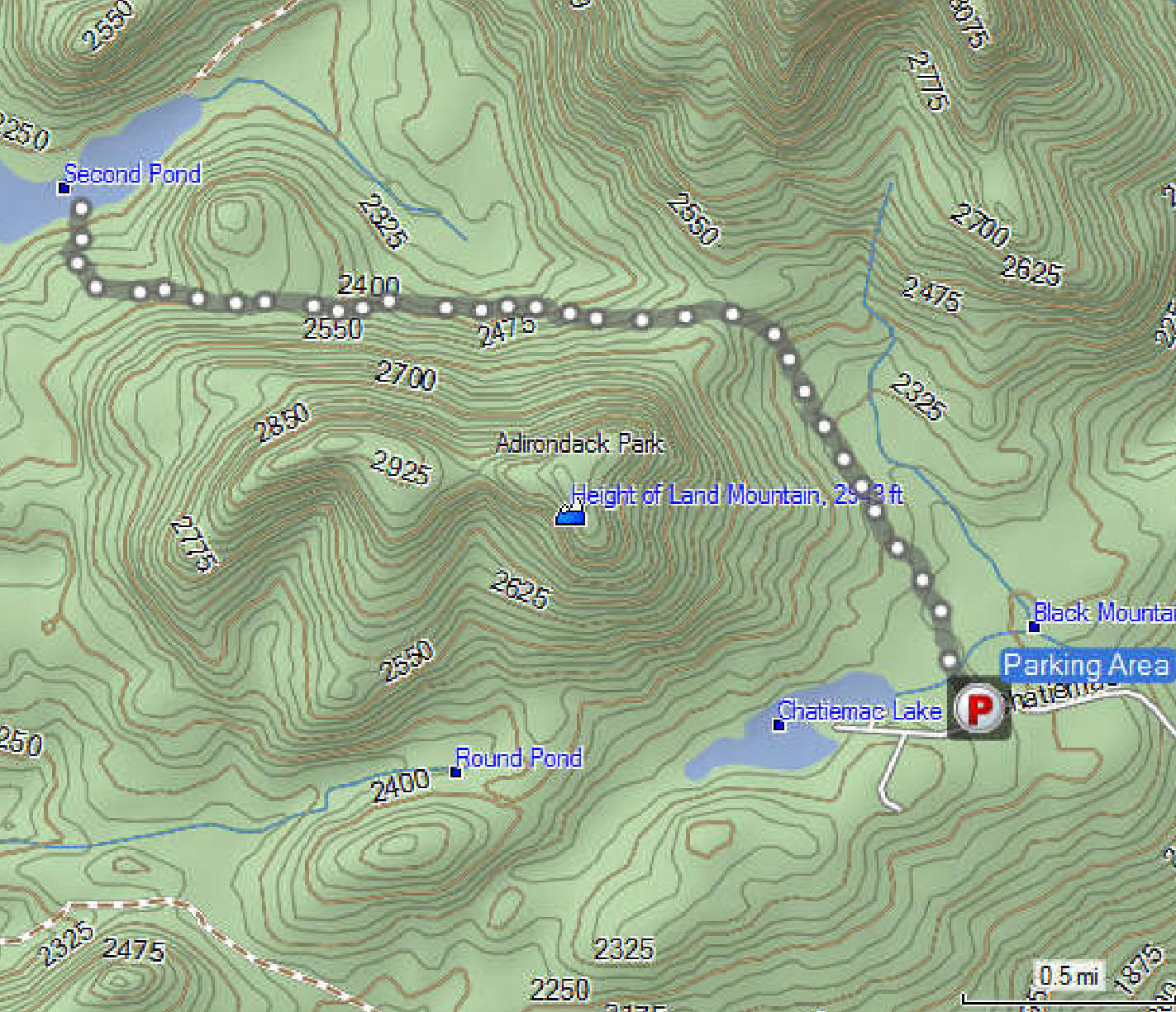 Directions: The trailhead is located off NY 8 on Chatiemac Road. You'll find Chatiemac Road, about 1.5 miles north of the small hamlet of Bakers Mills. This dirt road will have you climbing as you'll gain over 700 feet of elevation over 2.3 miles as you make your way to the small parking area. There is a DEC sign that marks the trailhead at the parking area, located just before you reach the private property of the Chatiemac Club. The GPS coordinates of the parking area is N43 38.703 W74 02.582.