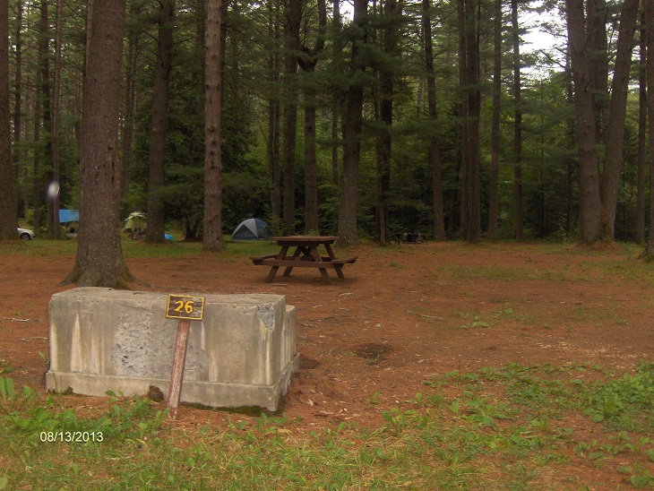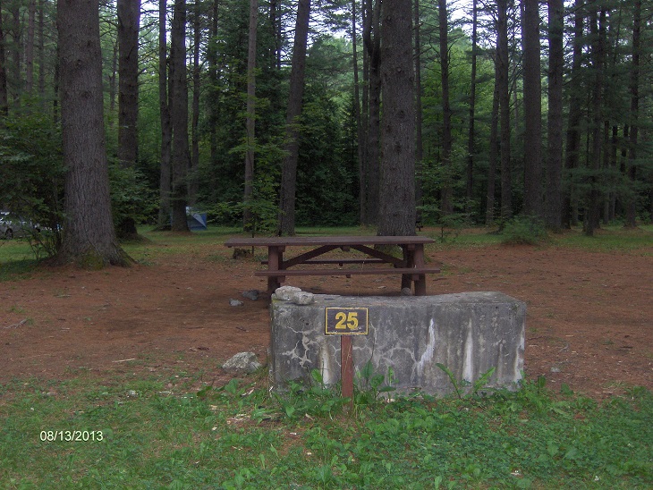 Some maps show a trail across from the campground that heads toward the Dix Mountain Wilderness. This trail was called the Lindsay Brook Trail, but was abandoned due to major beaver activity. Look below for a few pictures from the campground and a campground map. You can find more information on this state campground, including reservations from the NY DEC website.