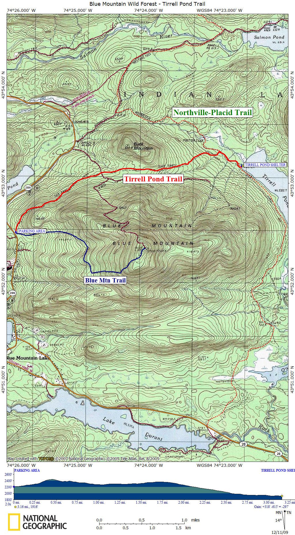 This yellow marked trail starts from the popular Blue Mountain trailhead off NY 28/NY 30 and runs three miles to the Northville-Placid Trail then another 0.3 miles to the Tirrell Pond Lean To. Most visitors to this trailhead are heading up to the fire tower on Blue Mountain so odds are good that you might have this trail to yourself. The GPS coordinates of the parking area is N43 52.506 W74 25.886.