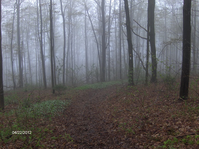 1.4 1678 ft Jct with blue blazed Neal Brook Trail that leads to Pipeline road. Reach Woodchuck Hollow. Continue on white blazed FLT/NCT.