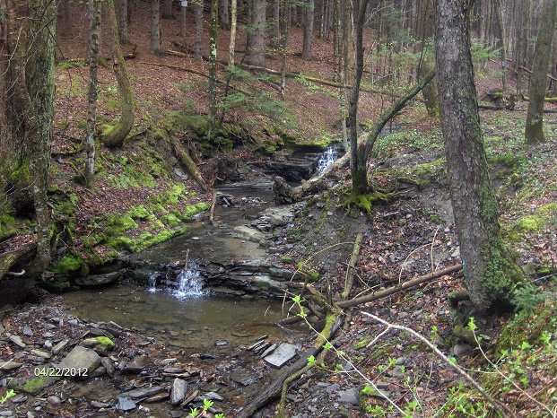 Directions: From Cortland, I-81 south to Exit 10. Turn left on US 11 south. Turn right on NY 392 West then right on Carson Rd. Go around sharp left turn bend and just past the Snyder Hill Rd junction, on your left is a seasonal dirt road called Cortland 9 Road. The GPS coordinates of the junction is N42 30.727 W76 06.122. Turn left on Cortland 9 road and follow to the end and park here. The GPS coordinates are N42 31.550 W76 06.928 of the end of the road.